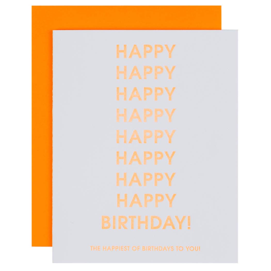 Our "The Happiest of Birthdays to You" Birthday card is letterpress printed on a vintage printing press.