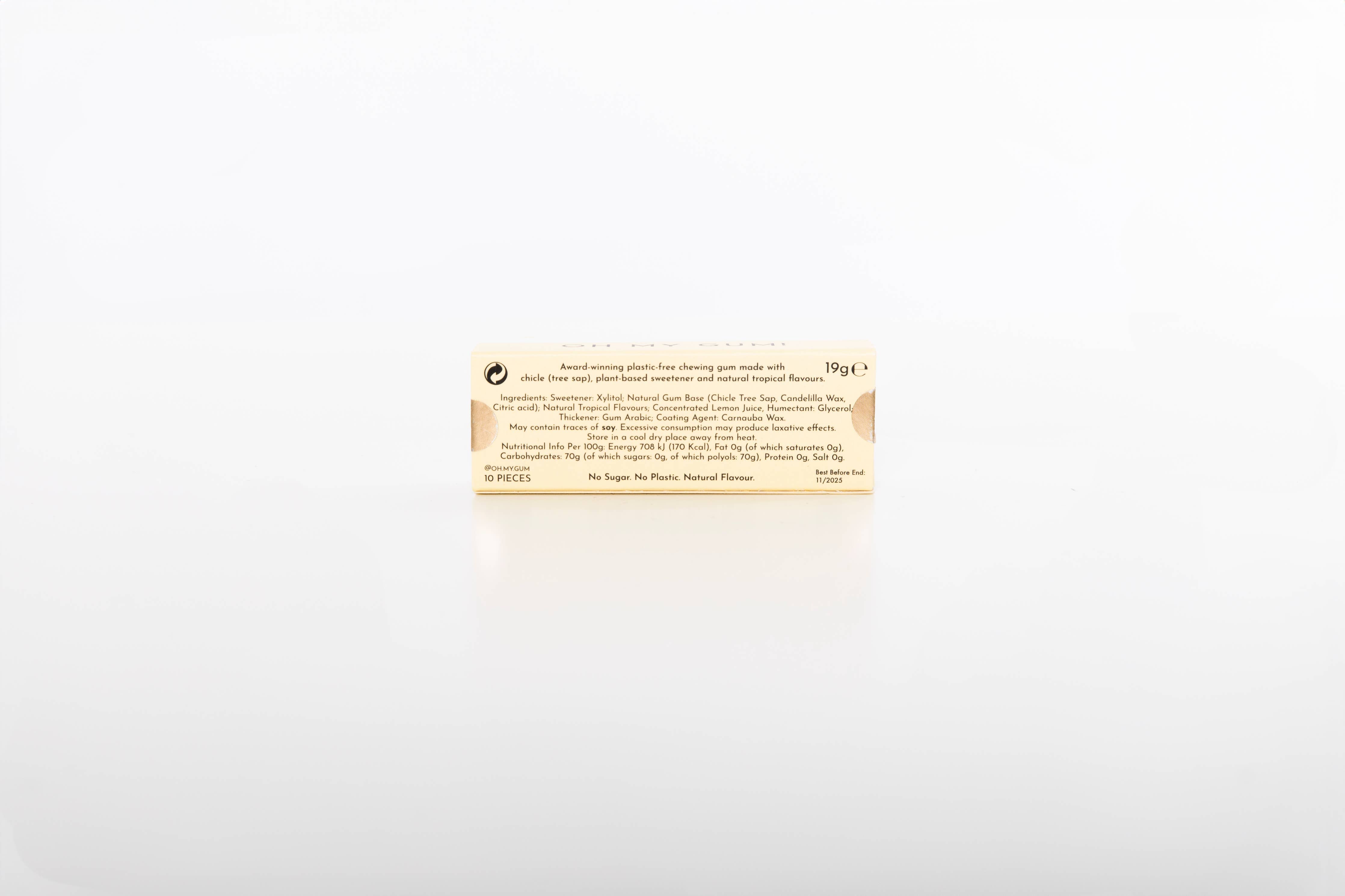 Dive into paradise with our tasty, plastic-free, sugarless tropical chewing gum. Made with 100% xylitol, a natural sweetener derived from plants, this refreshing gum offers a burst of juicy tropical fruits with every chew.