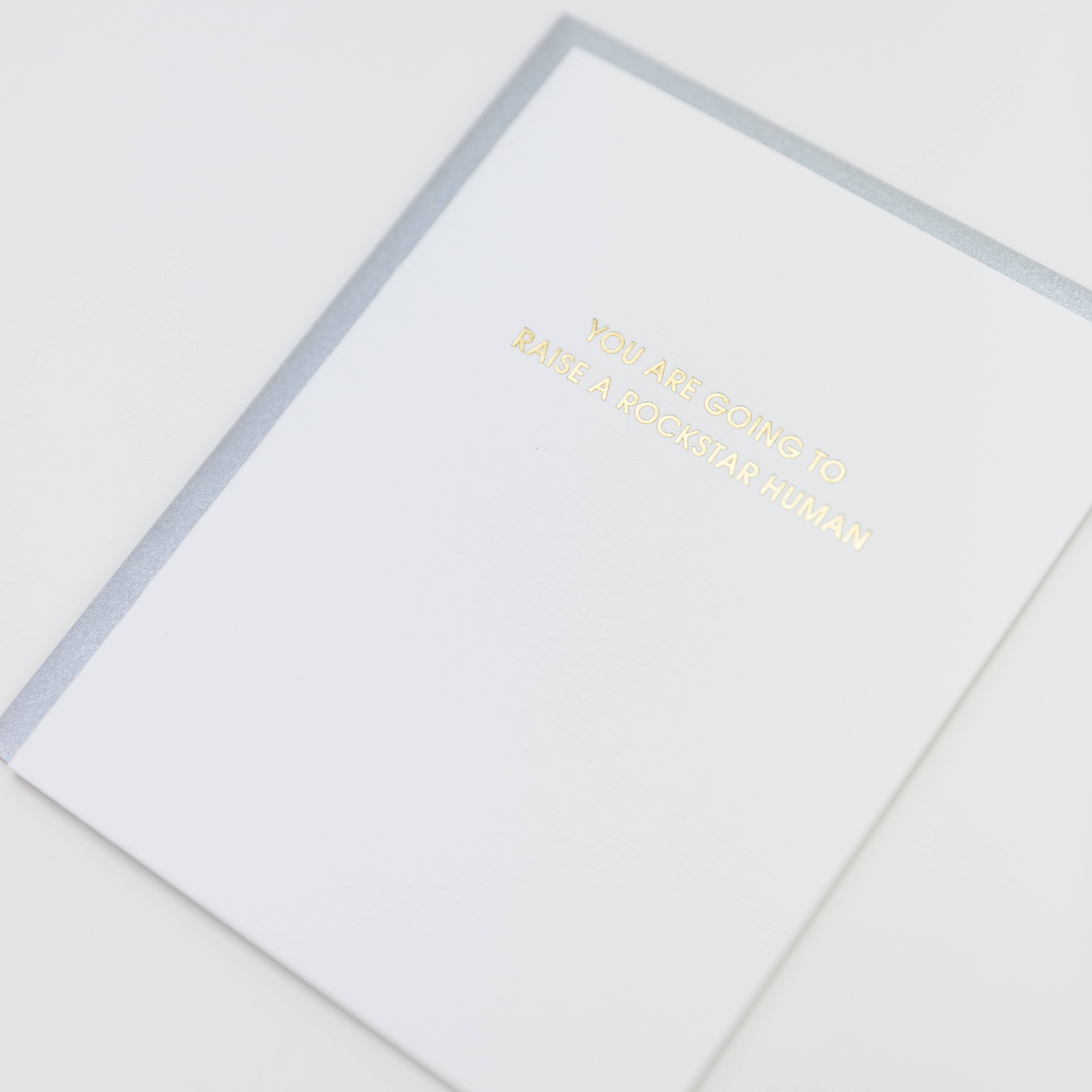 Our "You Are Going To Raise a Rockstar Human" Parenting + Baby card is letterpress printed on a vintage printing press.