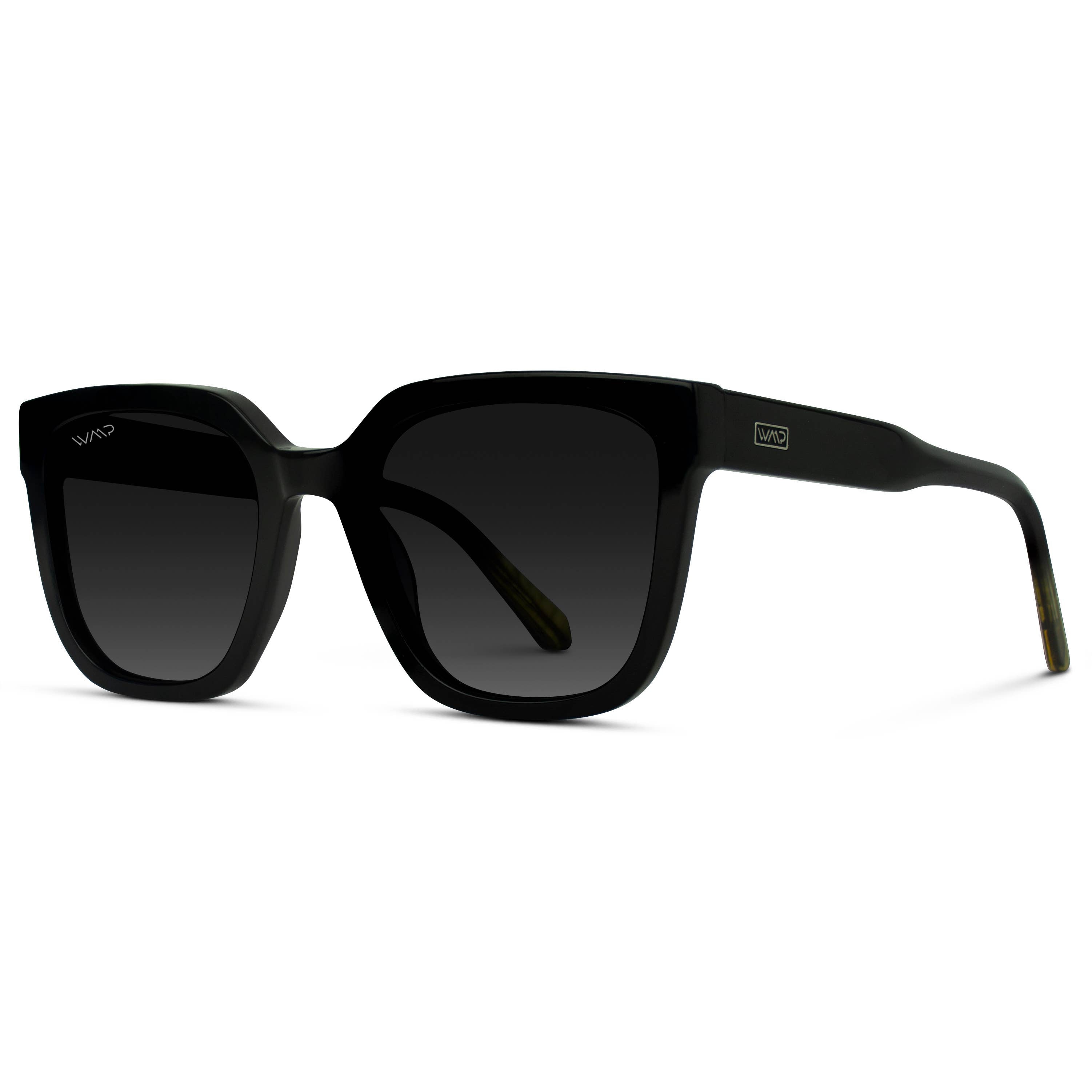 Wren - Square Polarized Sunglasses for Women: Glossy Black / Black Lens